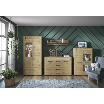 Ciepła, dębowa kolorystyka, podświetlana wstawka oraz metalowy uchwyt sprawiają, że kolekcja Artis nadaje wnętrzom niepowtarzalnego charakteru.