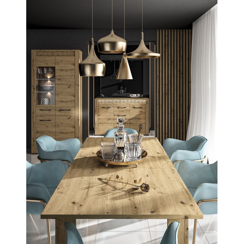 Ciepła, dębowa kolorystyka, podświetlana wstawka oraz metalowy uchwyt sprawiają, że kolekcja Artis nadaje wnętrzom niepowtarzalnego charakteru.
