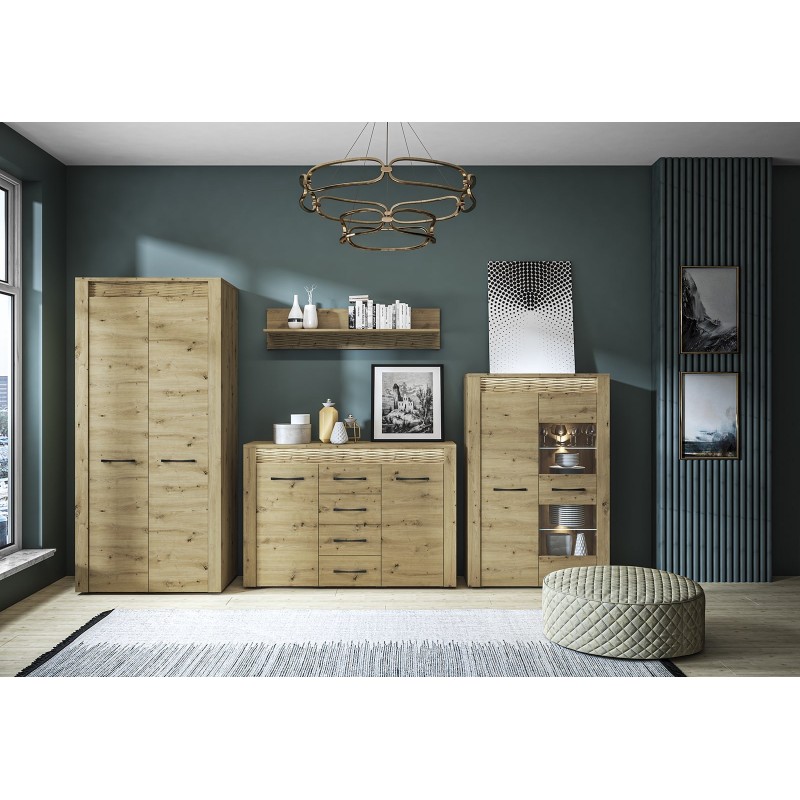 Ciepła, dębowa kolorystyka, podświetlana wstawka oraz metalowy uchwyt sprawiają, że kolekcja Artis nadaje wnętrzom niepowtarzalnego charakteru.