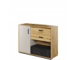 Nowoczesna komoda z trzema szufladami na bieliznę oraz szafką z drzwiami. Dodatkowa, łatwo dostępna wnęka to dobre miejsce na drobiazgi i szkolne akcesoria.