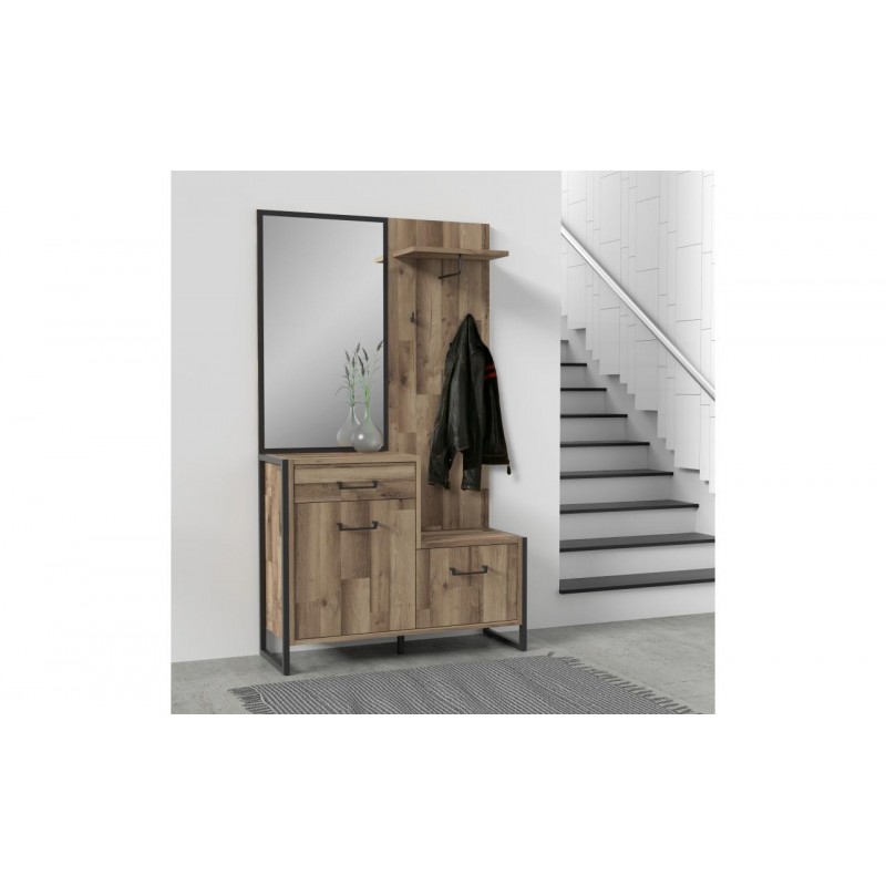 Meble do przedpokoju z tej kolekcji pozwolą na stworzenie eleganckiej, stylowej i nowoczesnej przestrzeni w korytarzu. Połączenie czarnych elementów z dekorem Dąb Klepkowy stwarza piękną, industrialną aranżację, która zagwarantuje odpowiednie przechowywanie wierzchniej odzieży.