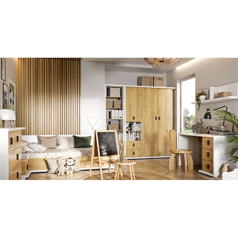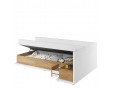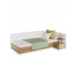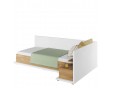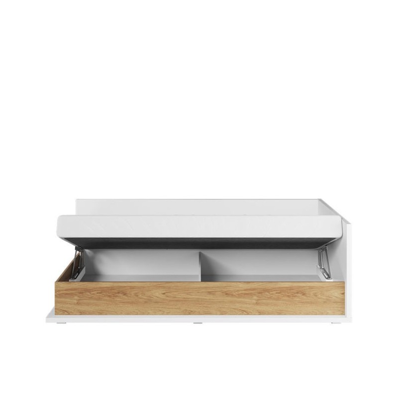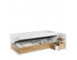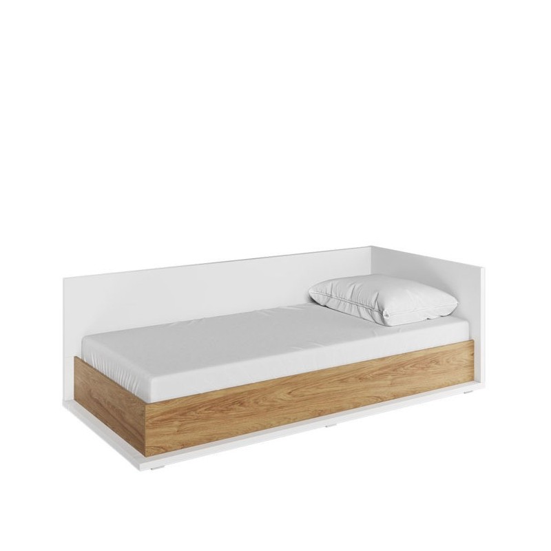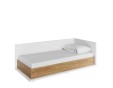 Wygodne i praktyczne łóżko jednoosobowe w nowoczesnym stylu. Ponadczasowe połączenie bieli i dekoru o ciepłym kolorze drewna sprawia, że łóżko stworzy przytulną aranżację w każdym pomieszczeniu.