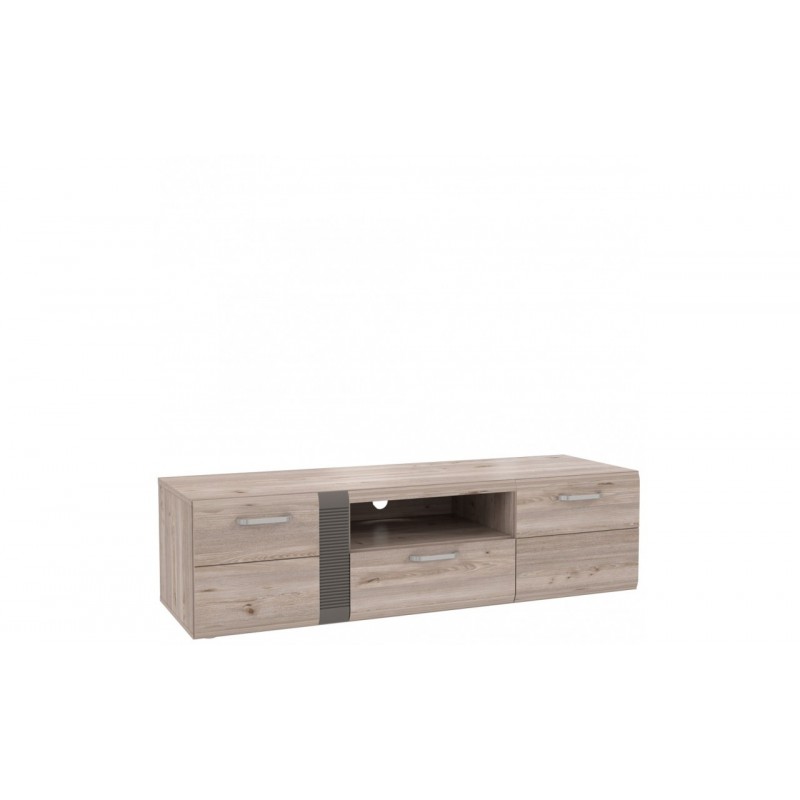 Szafka RTV to stylowe i praktyczne uzupełnienie aranżacji salonu czy pokoju dziennego. Wykonana w dekorze Dębu Nelsona ze wstawkami Szarego Matu ociepli pomieszczenie i doskonale wkomponuje się w każdą aranżację wnętrza.