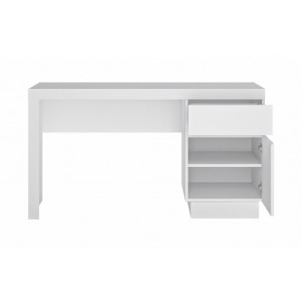 Efektowne biurko z kolekcji LYON biały znakomicie prezentuje się w połączeniu z wiszącą półką z serii LYON biały, szafą ubraniową oraz komodą. Mebel świetnie sprawdzi się nie tylko w domowym gabinecie, ale w pokoju młodzieżowym oraz w pokoju dziennym, w którym aranżujesz kącik do pracy. Wysoka jakość mebla gwarantuje długotrwałe, niezawodne użytkowanie i doskonałą prezencję.