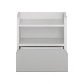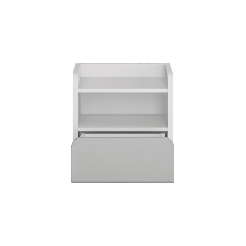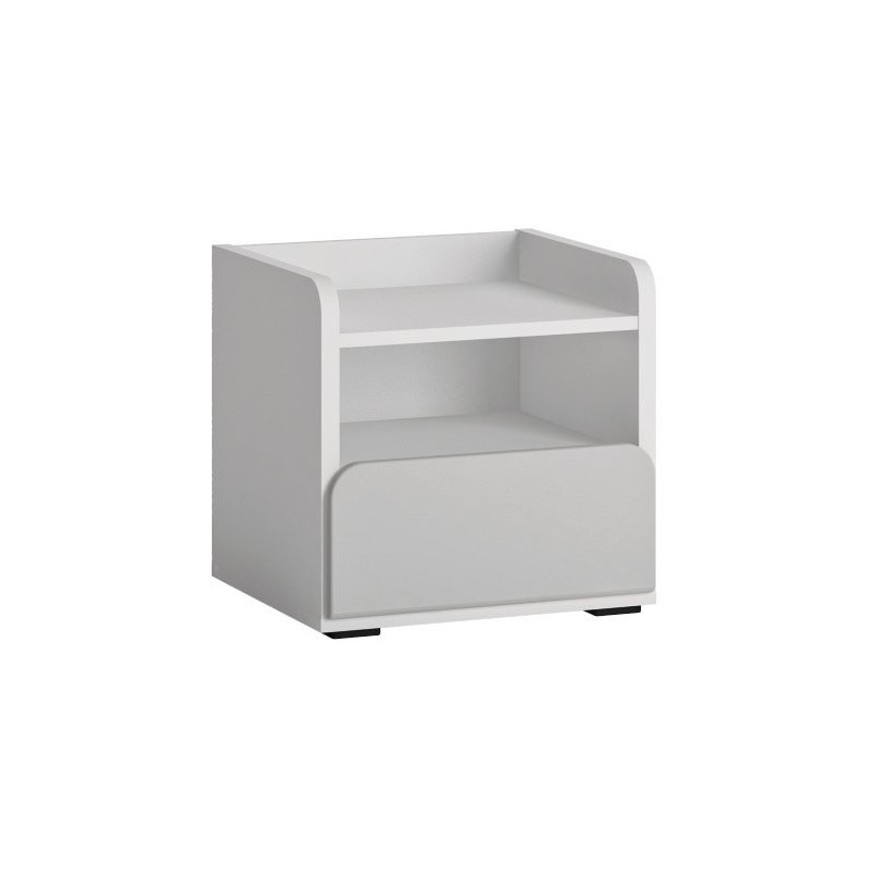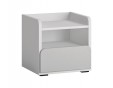- Funkcjonalna szafka nocna wyposażona w wygodną szufladę, otwartą przestrzeń oraz półkę zabezpieczoną po bokach w taki sposób, aby nic z niej nie spadło.