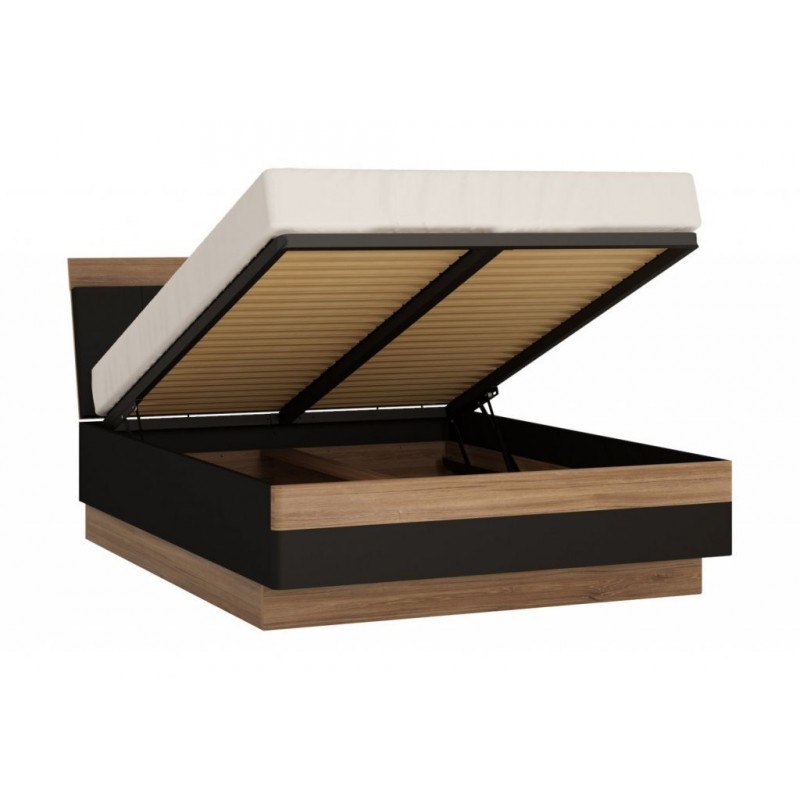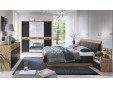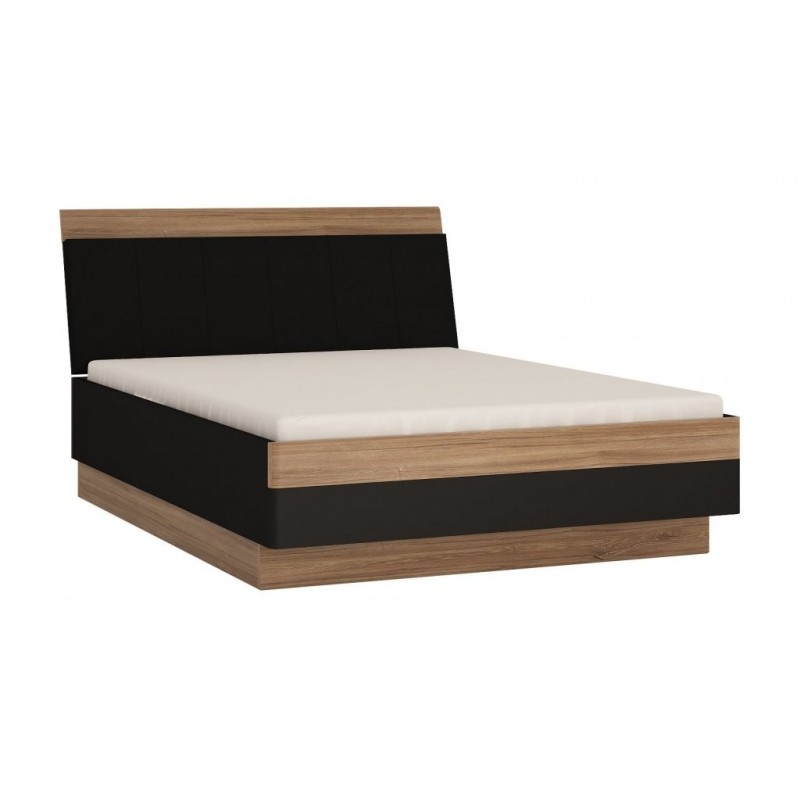 - Eleganckie łóżko dla dwojga w dwóch kontrastujących ze sobą dekorach dębu Stirling i czarnego matu.