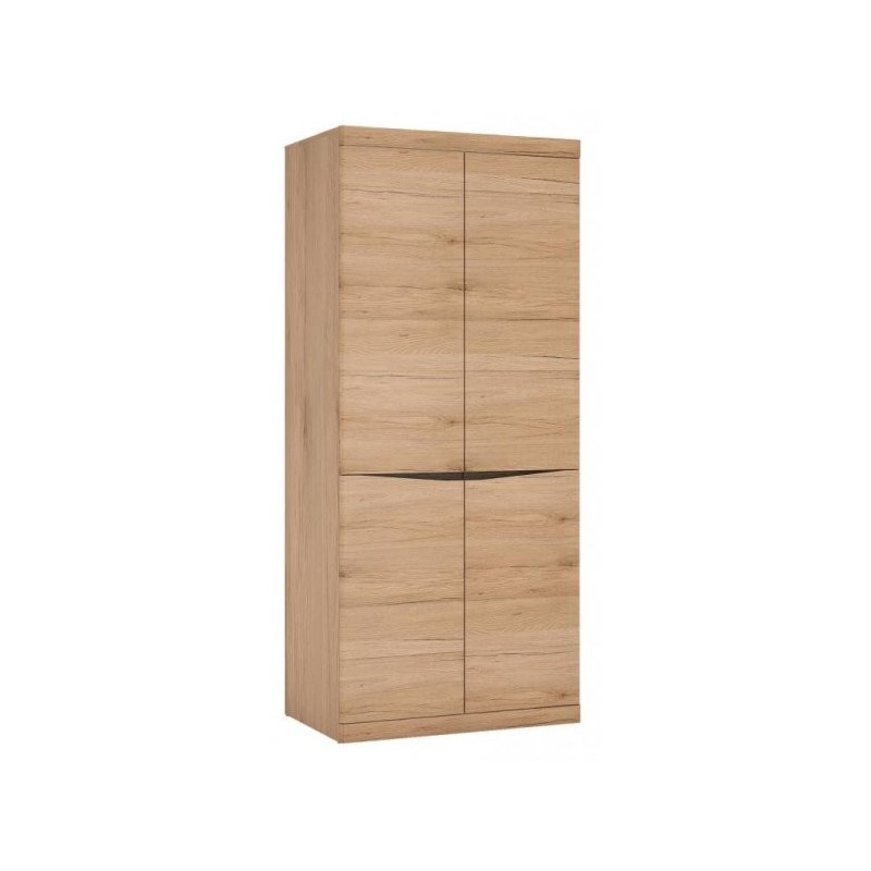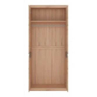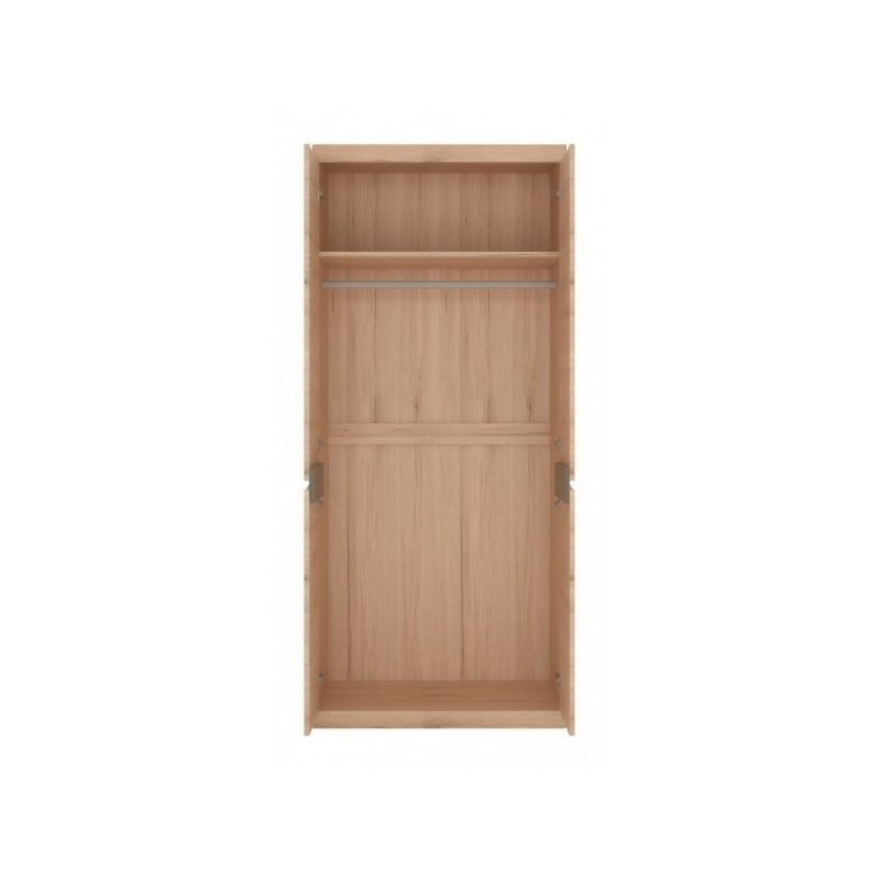 - Dwudrzwiowa szafa wyposażona w drążek na ubrania pomieści wszystkie kurtki, płaszcze i sukienki. Pojemna półka natomiast będzie idealnym miejscem na czapki, szaliki i rękawiczki.