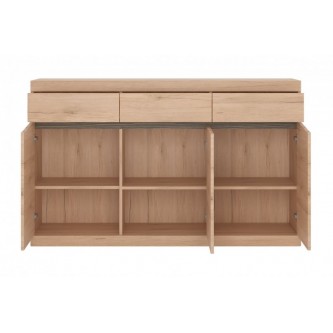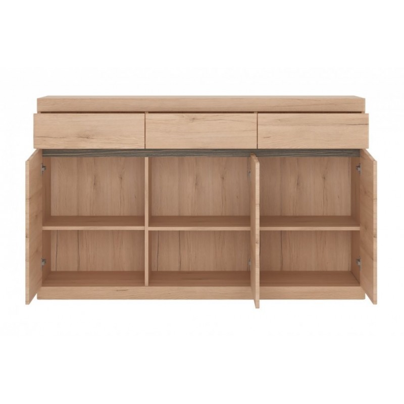 Korpus wykonany z płyty laminowanej odpornej na uszkodzenia, zarysowania, wilgoć i wysoką temperaturę. - Charakterystyczne podfrezowane uchwyty.