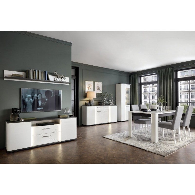 Niezwykle nowoczesna witryna prawa Venezia jest meblem, który powinien znaleźć się w Twojej jadalni lub w salonie, w którym króluje nowoczesny wystrój i funkcjonalność. Podświetlona witryna zdobi i gwarantuje pojemność przechowywania.
