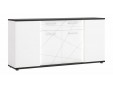 Komoda z serii Venezia jest meblem, wyposażonym w dwie szuflady z mechanizmem cichego domykania. Oprócz nich biała komoda Venezia posiada czworo drzwiczek, za których frontami znajdują się praktyczne półki. Komoda wykonana została z płyty wiórowej, jej fronty natomiast powstały z płyty MDF.