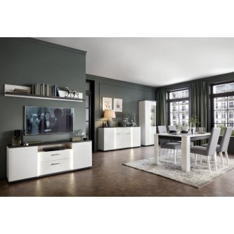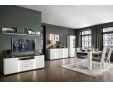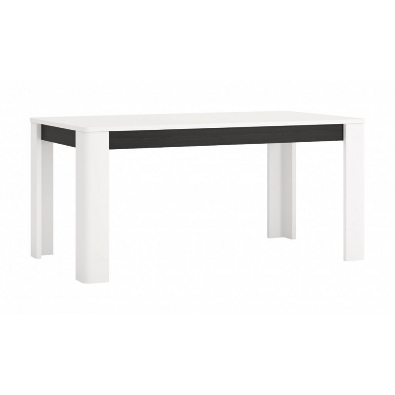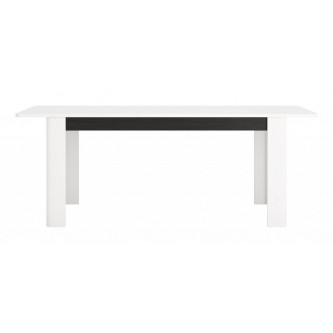 Stół rozkładany biały z elementami czerni to propozycja do nowocześnie urządzonej jadalni. Stół rozkładany, prezentowany w ofercie wyróżnia się niebanalną stylistyką, łączącą efektowną biel w połysku z czernią. Blat stołu oraz jego nogi wykonane zostały z odpornej na uszkodzenia płyty MDF. Biały stół gwarantującą niezwykły efekt wizualny . Oskrzynia stołu rozkładanego wykonana została z płyty wiórowej w kolorze dąb Vicenza czarny, który pięknie kontrastuje z blatem.