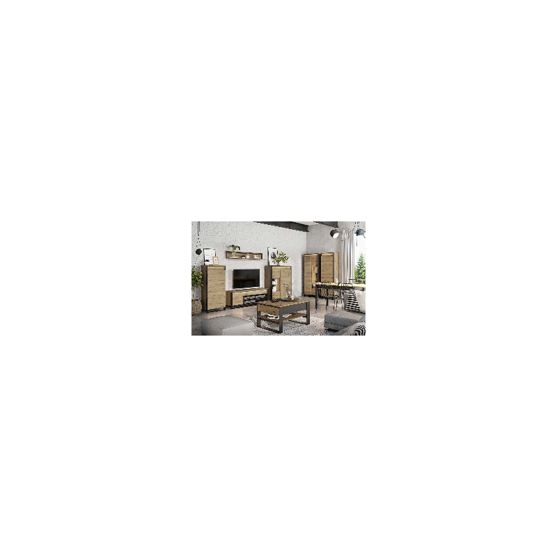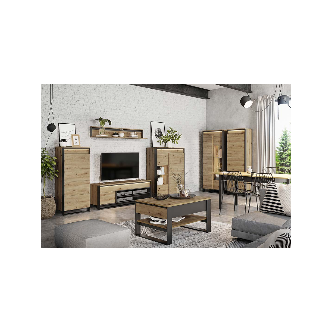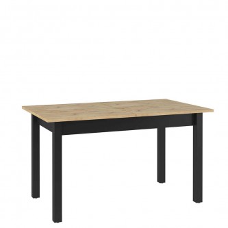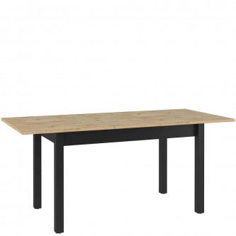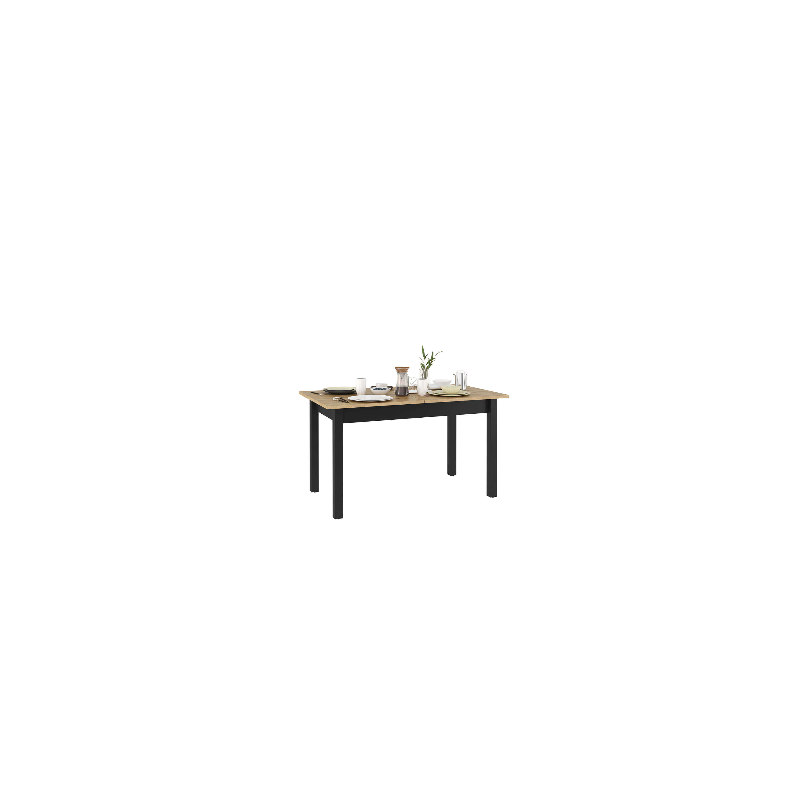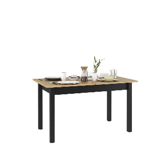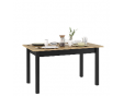 Elegancki, rozkładany stół w nowoczesnym stylu. Czarne, smukłe nogi w połączeniu z blatem imitującym naturalne drewno tworzą zestaw o niepowtarzalnym, loftowym charakterze.