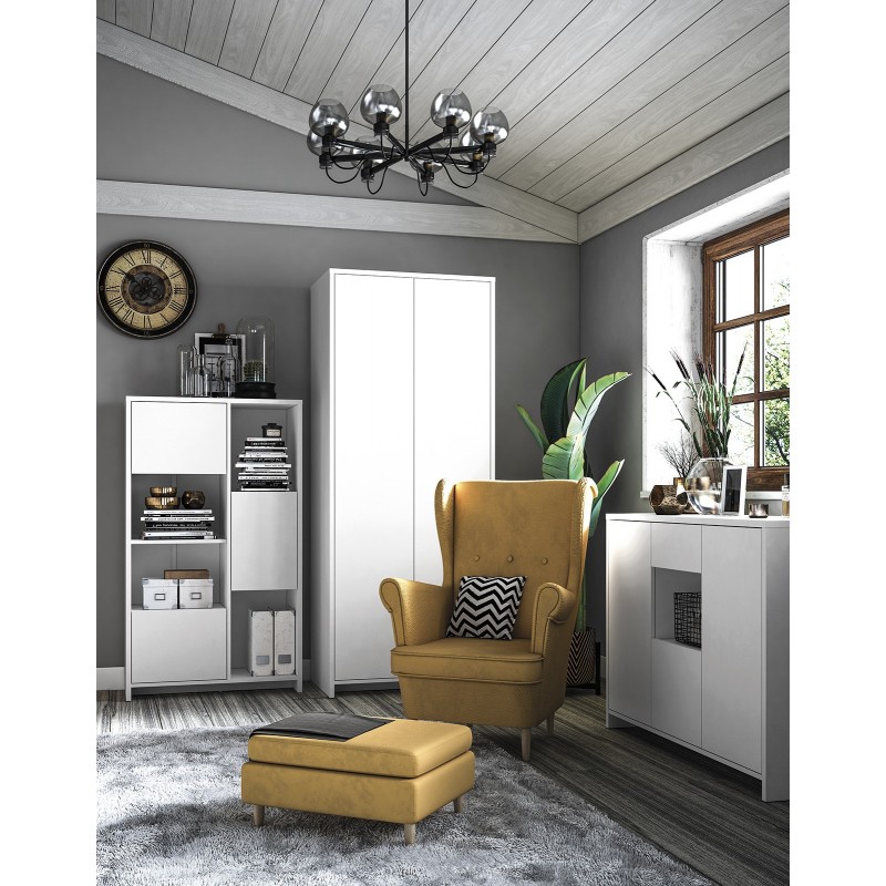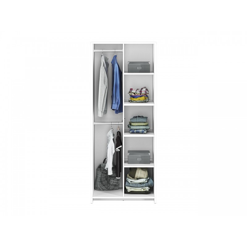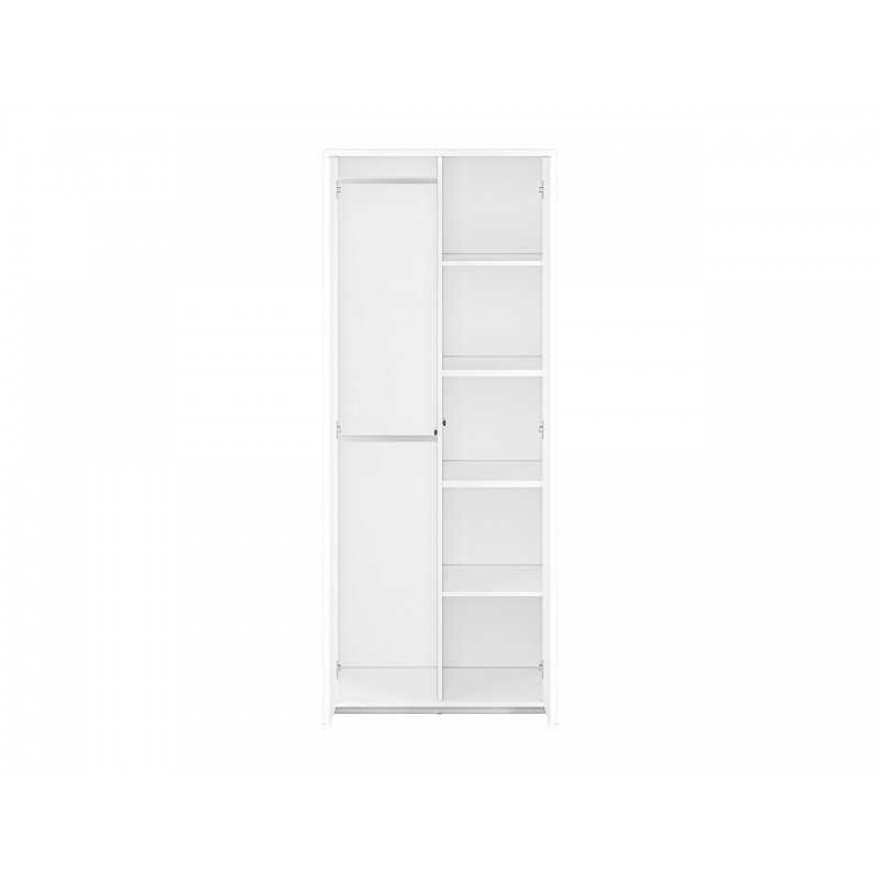 Szafa Kendo 03 to funkcjonalny mebel, który idealnie sprawdzi się zarówno w pokoju dziennym jak i sypialni czy pokoju naszej pociechy. Wnętrze bryły zostało podzielone na dwie komory: z drążkiem oraz półkami. Klasyczna forma i biały kolor sprawiają, że mebel będzie dobrze prezentował się w każdym wnętrzu. W myśl teorii minimalizmu tradycyjne uchwyty zastąpiono otwieraniem push to open. Szafa została wykonana z wysokiej jakości płyty laminowanej, a jej krawędzie zabezpieczono odpornym na uderzenia i wilgoć obrzeżem ABS.