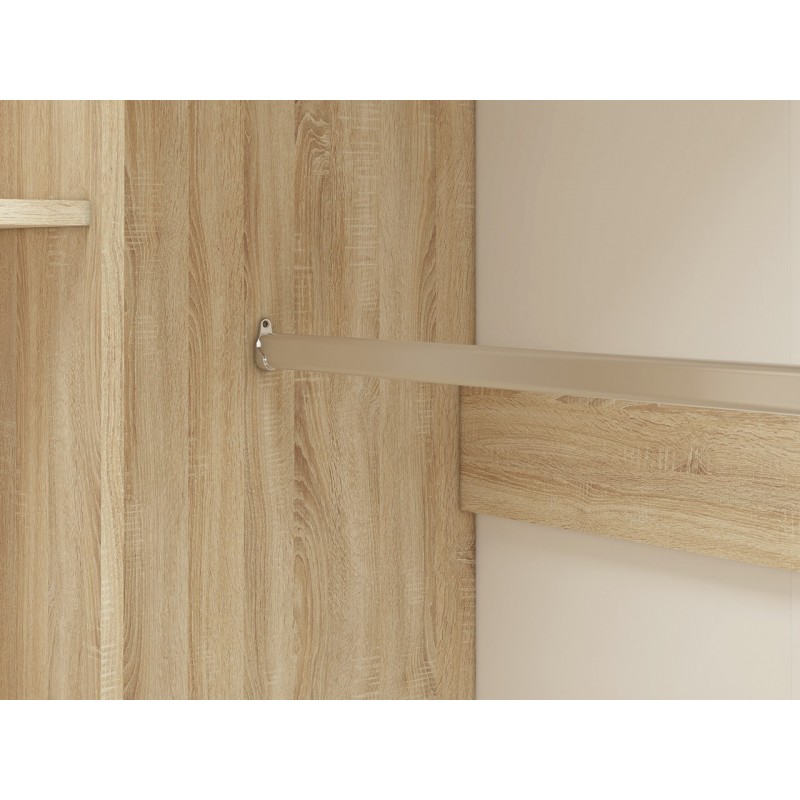 Szafa narożna Avo 04 to idealne rozwiązanie np. do pokoju młodzieżowego. Podwójny front kryje cztery półki i dwa drążki, dzięki czemu znajdziemy mnóstwo miejsca do przechowywania ubrań czy zabawek. Ponadto, solidna konstrukcja i staranne wykonanie sprawiają, że mebel jest odporny na zarysowania czy uderzenia, a trwałe obrzeże ABS nie odkleja się i nie odkształca.