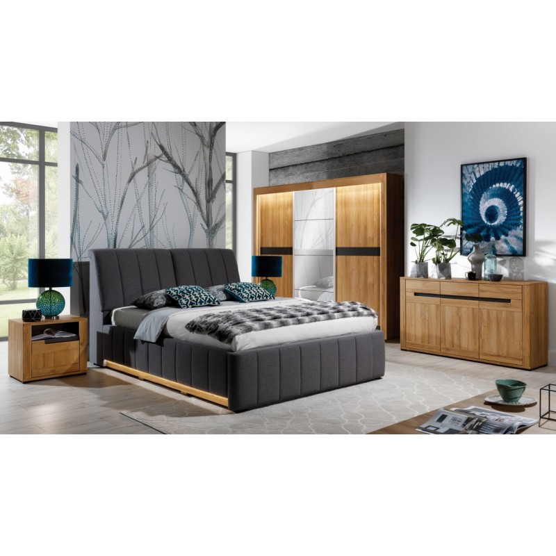 Zestawienie ciepłego odcienia drewna z grafitowymi elementami komody przyciąga wzrok oraz tworzy niezwykle designerski mebel do każdego rodzaju wnętrz. Bezuchwytowe fronty dodają całości lekkości i podkreślają oryginalny charakter mebla. Komoda idealnie sprawdzi się w konfiguracji z innymi bryłami z serii YORK lub jako pojedynczy mebel, który można dopasować do własnej aranżacji pomieszczenia.