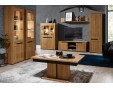 Szklane półki kredensu można dodatkowo doposażyć w oświetlenie LED (za dopłatą). Zestawienie ciepłego odcienia drewna z grafitowymi elementami kredensu przyciąga wzrok oraz tworzy niezwykle designerski mebel do każdego rodzaju wnętrz. Bezuchwytowe fronty dodają całości lekkości i podkreślają oryginalny charakter mebla. Kredens idealnie sprawdzi się w konfiguracji z innymi bryłami z serii YORK lub jako pojedynczy mebel, który można dopasować do własnej aranżacji pomieszczenia.