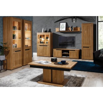 Zestawienie ciepłego odcienia drewna z grafitowymi elementami szafki przyciąga wzrok oraz tworzy niezwykle designerski mebel do każdego rodzaju wnętrz. Bezuchwytowe fronty dodają całości lekkości i podkreślają oryginalny charakter mebla. Szafka idealnie sprawdzi się w konfiguracji z innymi bryłami z serii YORK lub jako pojedynczy mebel, który można dopasować do własnej aranżacji pomieszczenia.