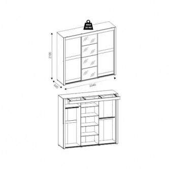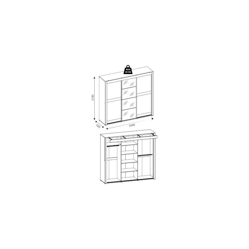 Kolor korpusu i frontów: dąb grandson/ grafit + lustro