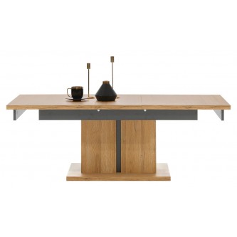 Ława rozkładana YORK Y14 prezentuje się niezwykle elegancko w jadalni lub pokoju dziennym, jest idealnym rozwiązaniem do niewielkiego wnętrza. Na co dzień postawisz na niej filiżankę kawy, odłożysz ulubione czasopismo, a w razie potrzeby z łatwością dostosujesz długość blatu do większej ilości osób. Ława rozkłada się niezwykle lekko, w każdej chwili możesz zwiększyć jej długość ze 114 cm do 144 cm . Solidna kolumnowa podstawa sprawia, że mebel jest stabilny. Zestawienie ciepłego odcienia drewna z grafitowymi elementami ławy przyciąga wzrok oraz tworzy niezwykle designerski mebel do każdego rodzaju wnętrz. Ława idealnie sprawdzi się w kompozycji z innymi bryłami z serii YORK lub jako pojedynczy mebel, który można dopasować do własnej aranżacji pomieszczenia.