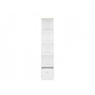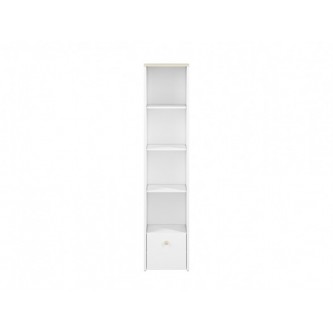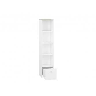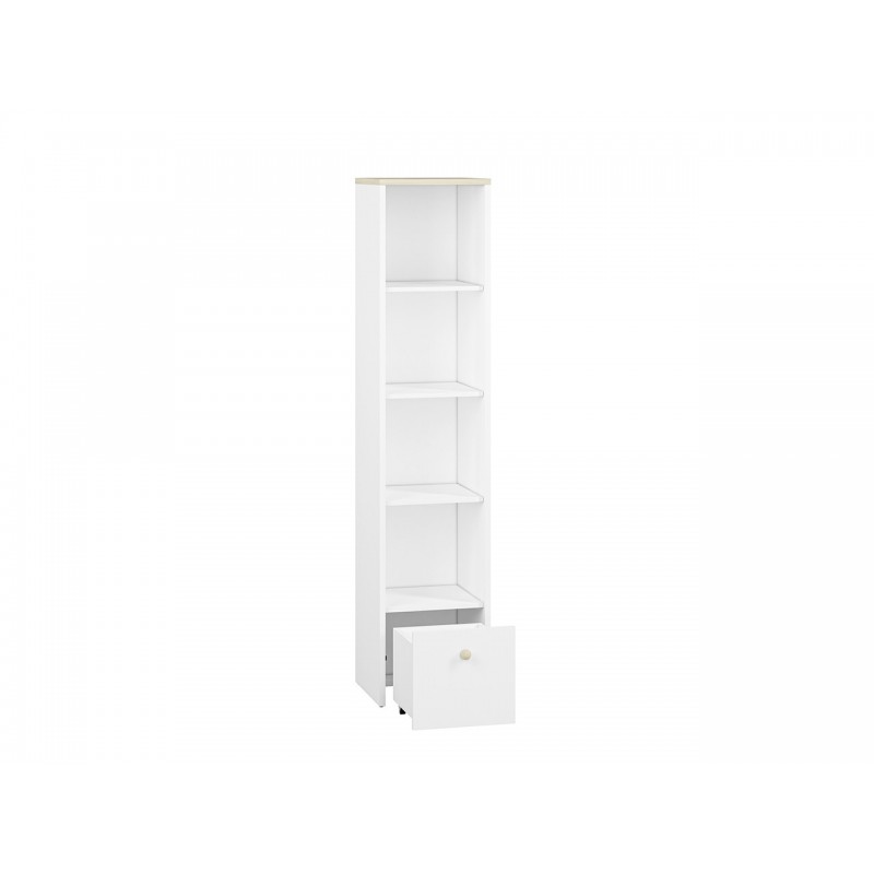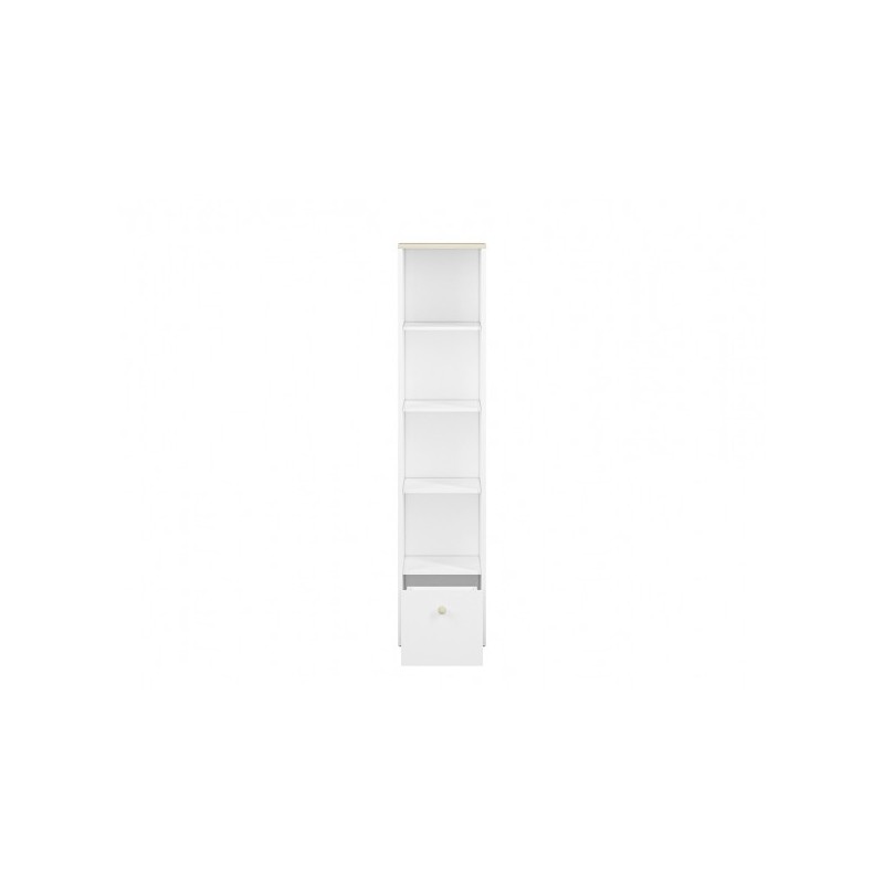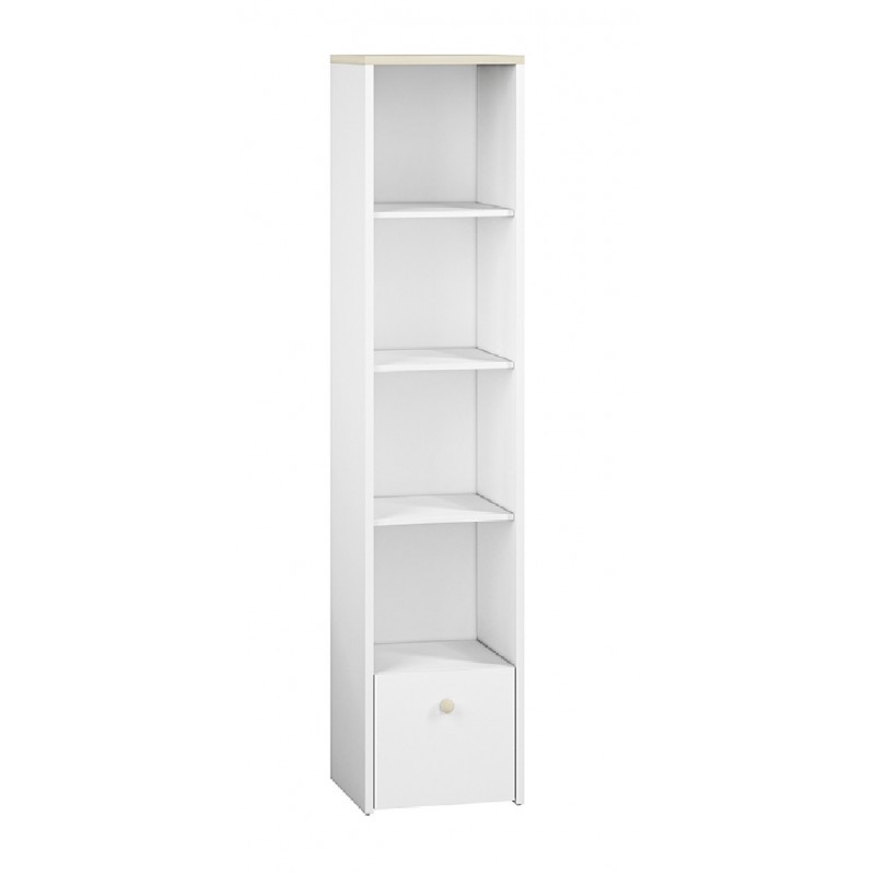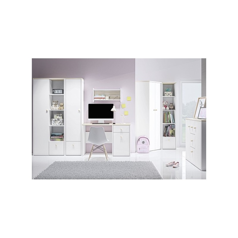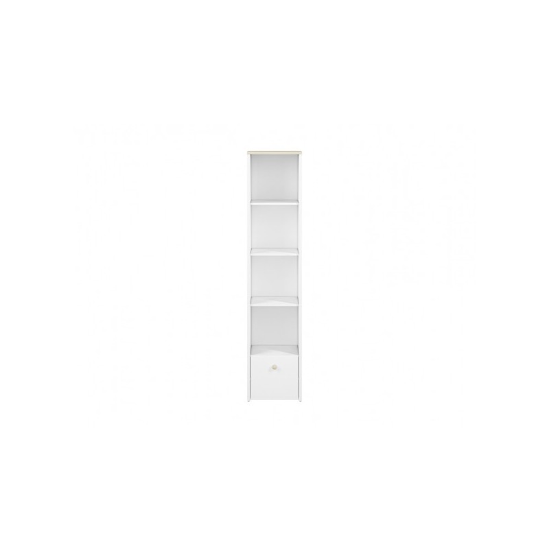 Regał Elmo, zaprojektowany przez ML Meble, cechuje się prostotą, a jednocześnie niezwykłą funkcjonalnością, a zatem wszystkim, co jest potrzebne podczas urządzania pokoju młodzieżowego! Regał Elmo złożony jest z czterech otwartych wnęk, dzięki którym zaprezentujesz biblioteczkę Twojej pociechy, a także niewielkiego kontenera, ułatwiającego przechowywanie drobnych artykułów. W opcji za dopłatą istnieje możliwość wymiany frontu kontenerka na pudrowy róż, bądź krystaliczny błękit. Okrągły drewniany uchwyt jest ułatwieniem, dzięki któremu najmłodsi nie będą mieli problemu z otwieraniem drzwiczek. Zdecyduj się na meble Elmo już dziś!