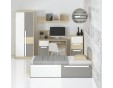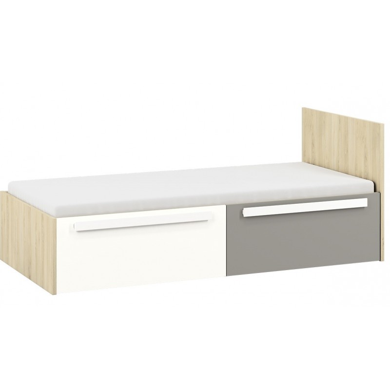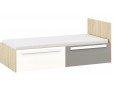 Łóżko Drop, pochodzące od ML Meble to produkt, który z całą pewnością zadowoli najmłodszych Domowników, a także młodzież. Prosta budowa łóżka Drop do pokoju młodzieżowego, sprawia, że nie zabiera dodatkowego miejsca, a jednocześnie nie wygląda nudno i banalnie. Ciekawe wybarwienie – buk fjord, białe wstawki oraz odcienie szarości do wyboru są wyrazem nowoczesności, a dodatkowo podkreślą ją białe podłużne uchwyty, znajdujące się na szufladach. Jeśli mowa o szufladzie, mają one za zadanie przechować pościel czy też inne artykuły należące do Twojego dziecka. Kolekcja Drop została wykonana z solidnych materiałów, zatem posłuży ona przez długie lata! Do łóżka Drop można dokupić dodatkowe zastawki. Znajdziesz je w pozostałych produktach z tej kolekcji. Materac do łóżka zakupienia osobno.
