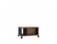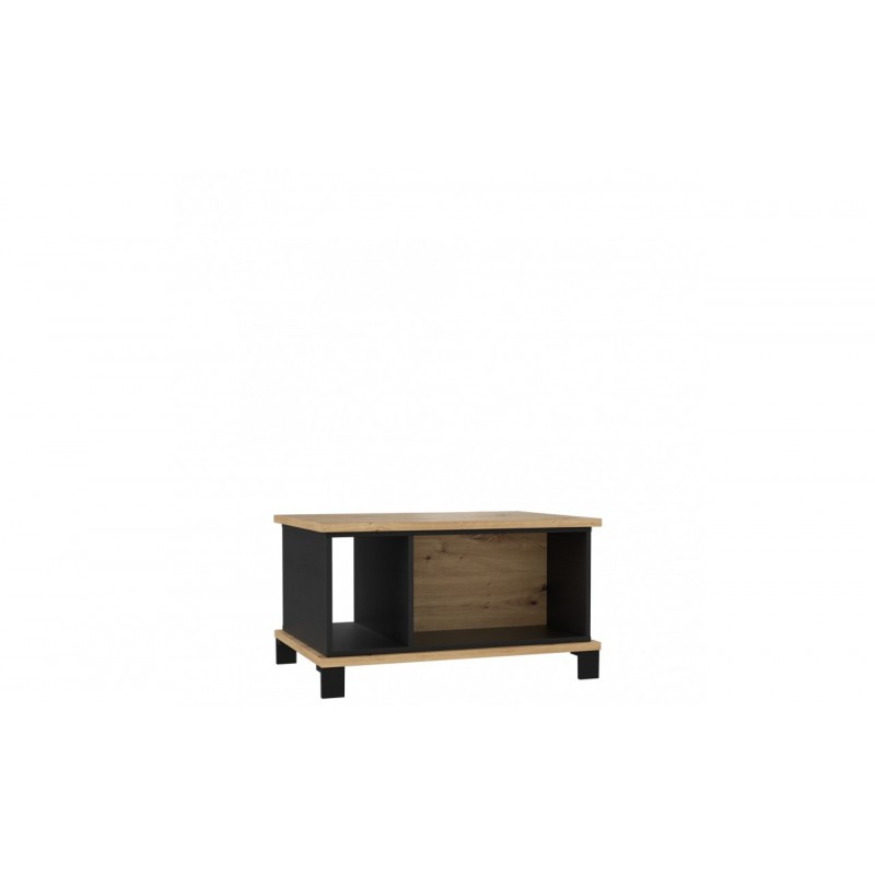 Stolik okolicznościowy w niebanalnym zestawieniu kolorystycznym dwóch dębowych odcieni - Dębu Artisan i Dębu Czarnego to uosobienie nowoczesnego stylu. Wysokie czarne nóżki oraz nieregularny układ poprzecznych ścianek znajdujących się pod blatem, podkreślają nowoczesny charakter bryły. Stolik pozwoli zorganizować miejsce do przechowywania najpotrzebniejszych rzeczy.