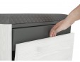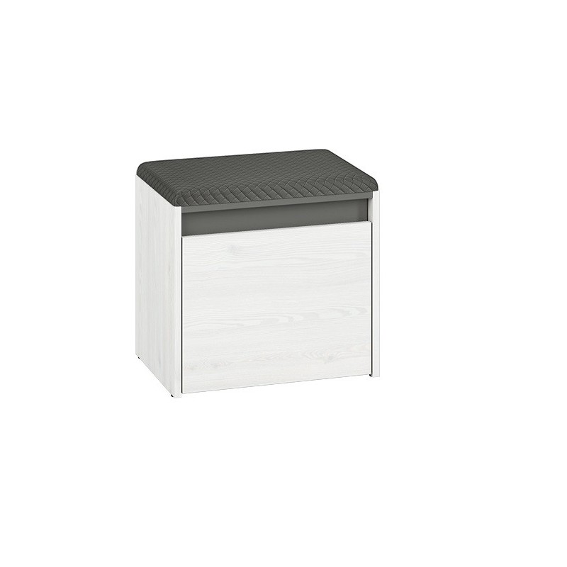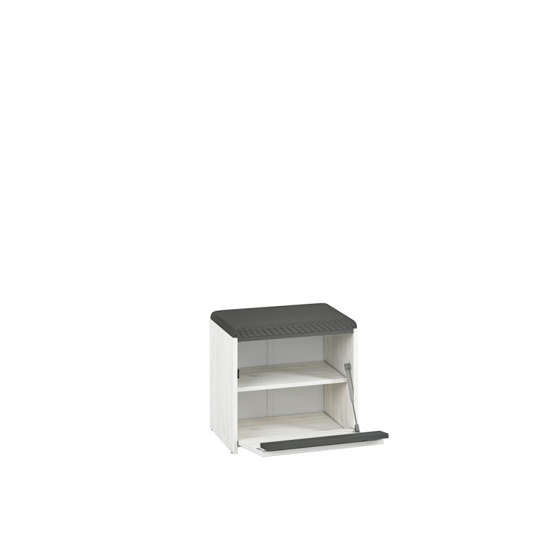 Szafka na buty Hyga 01, składa się z części jedno drzwiowej otwieranej do dołu. Kolekcja Hyga przeznaczona jest do aranżacji przedpokoju. Do produkcji kolekcji wykorzystano wysokiej jakości płyty meblowe laminowane. Modny kolor sosny śnieżnej w połączeniu z kolorem antracyt idealnie wpasowuje się w nowoczesne wnętrze.