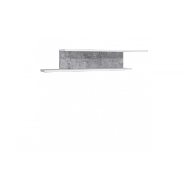 Dwukolorowa półka z tej kolekcji łącząca dwa dekory Beton Jasnoszary i Biały Połysk to idealne uzupełnienie przestrzeni nad biurkiem w pokoju młodzieżowym. Świetnie sprawdzi się jako miejsce do przechowywania książek lub ulubionych bibelotów.