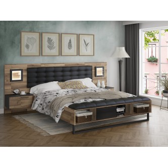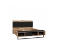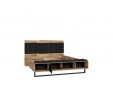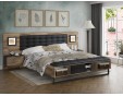Stylowe łóżko zostało wyposażone w wysokie wezgłowie z tapicerowanym zagłówkiem ze skóry ekologicznej, taki zagłówek to nie tylko efektowna dekoracja, to przede wszystkim wygodne oparcie. Uwagę zwraca metalowa noga łóżka, nawiązująca do industrialnego stylu kolekcji. Oryginalnym rozwiązaniem jest tapicerowana ławeczka u podnóża oraz dodatkowe schowki ukryte pod jej siedziskiem.