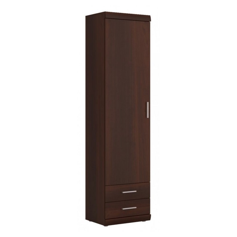 Bieliźniarka o głębokim i pięknym wybarwieniu jakim jest orzech imperial. Za drzwiami montowanymi prawo, lub lewostronnie znajdują się 3 półki, a poniżej są 2 szuflady na drobniejsze przedmioty. Mebel dodatkowo okala ozdobna listwa z płyty MDF.