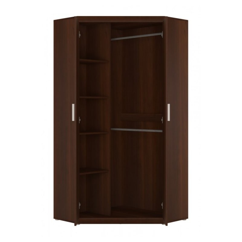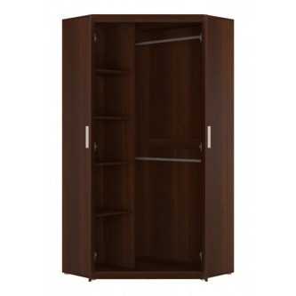 Meble z kolekcji Imperial to kilka eleganckich modeli zaskakujących przede wszystkim funkcjonalnością – idealnym na to przykładem jest prezentowana, narożna szafa wyposażona w 2 wnęki z drążkami na ubrania oraz 5 pojemnych półek, które bez problemu pomieszczą ubrania, buty i różnego rodzaju dodatki. Uwagę zwraca nie tylko starannie przemyślane wnętrze mebla, ale przede wszystkim jego wykończenie – konstrukcja szafy została bowiem wykonana z wytrzymałych i odpornych na uszkodzenia materiałów, które nawet po wielu latach użytkowania wciąż pięknie się prezentują. Całość uzupełniają kontrastowe detale w postaci srebrnych uchwytów, które dodają meblowi bardziej nowoczesnego charakteru.