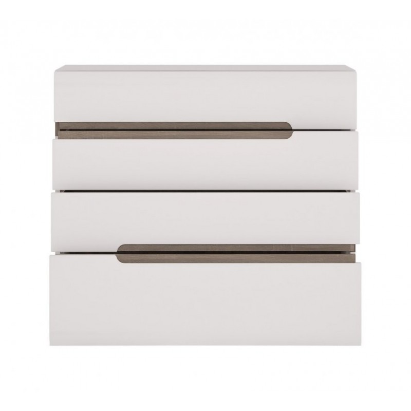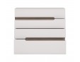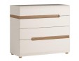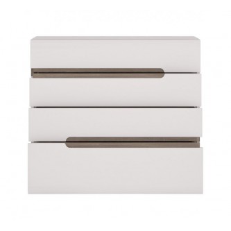 Niska i zgrabna komoda wyposażona w wygodne i pojemne szuflady. Dzięki systemowi krytych prowadnic każde otwarcie szuflady będzie płynne i delikatne.