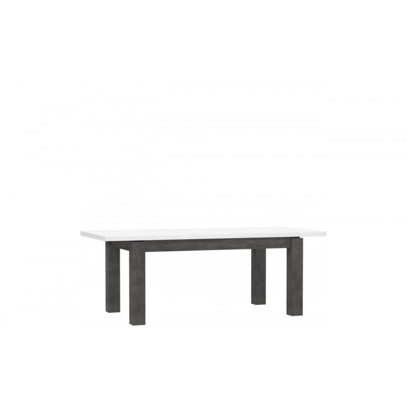 Stół rozkładany to praktyczny i niezwykle estetyczny mebel, który sprawdzi się w każdej jadalni. Wyjatkowości nadają mu zastosowane dekory: Beton Ciemnoszary oraz Biały Połysk.