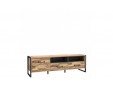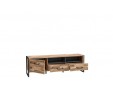 Szafka RTV wyróżnia się na tle innych mebli dzięki połączeniu dwóch stylowych dekorów: Dębu Klepkowego i Betonu Ciemnoszarego, który wpisuje się we współczesne trendy. Mebel jest oparty na czarnych, ramowych nogach. Otwarte półki mebla można dodatkowo podświetlić dostępnym w naszej ofercie oświetleniem LED, które podkreśli piękny design mebla.