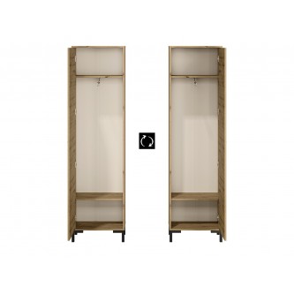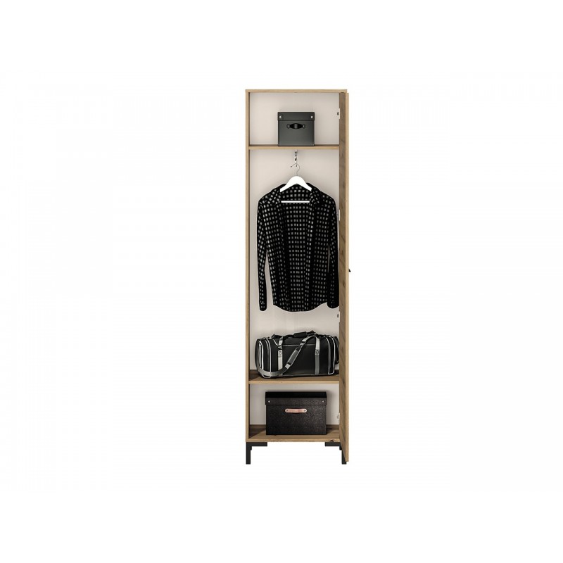 Zestawienie wyraźnie usłojonego dekoru dąb artisan z czarnymi uchwytami i nóżkami to idealne rozwiązanie do współczesnego wnętrza. Przemyślana konstrukcja brył zapewni miejsce do przechowywania butów i ubrań. Miękkie, tapicerowane siedziska oraz wieszak gwarantują komfort użytkowania. Dzięki różnorodności mebli Nevio z łatwością zaaranżujesz małe jak i duże wnętrze.