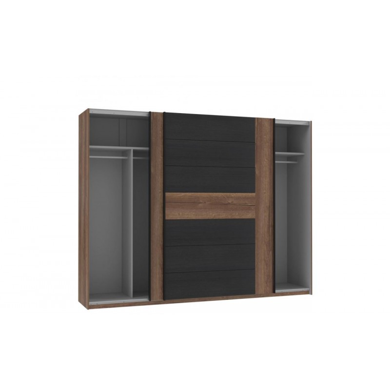 W opcji za dopłatą można wyposażyć szafę w dodatkowe półki, komody wewnętrzne, listwę z oświetleniem oraz hamulec.
