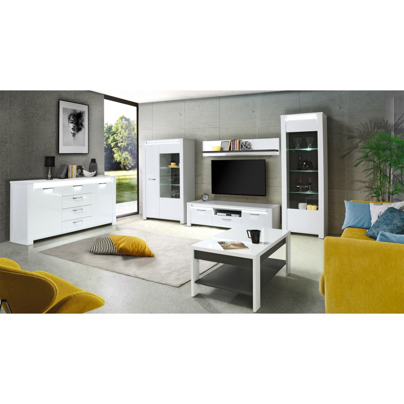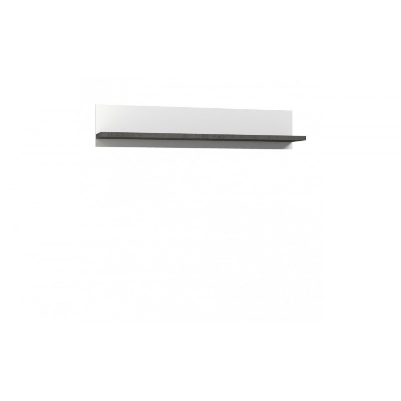 Prosta półka wisząca w dwóch dekorach: Białym Połysku i Betonie Ciemnoszarym to dobre miejsce na ekspozycję naszych ulubionych bibelotów lub zdjęć. Półka będzie doskonałym uzupełnieniem jadalni bądź salonu urządzonego z pozostałymi meblami z tej kolekcji.