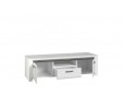 Funkcjonalna, szeroka szafka RTV umożliwi wyeksponowanie sprzętu elektronicznego, a dzięki swojej prostocie i elegancji będzie doskonałym uzupełnieniem aranżacji pokoju dziennego urządzonego w minimalistycznym stylu. Subtelny wygląd mebla podkreślony został delikatnym dekorem Biały Połysk, zaokrąglonymi frontami oraz łagodnym podświetleniem dostępnym w standardzie.