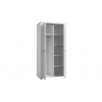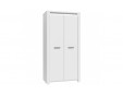 Pojemna dwudrzwiowa szafa ubraniowa będzie idealnym uzupełnieniem aranżacji sypialni, garderoby lub przedpokoju. Podzielona na dwie części przestrzeń wewnątrz szafy zapewnia dużo miejsca do przechowywania odzieży, pościeli i innych przedmiotów codziennego użytku. Subtelny wygląd mebla podkreślony został delikatnym dekorem Biały Połysk, ozdobną wstawką w dekorze Beton Ciemnoszary oraz łagodnym podświetleniem dostępnym w standardzie.