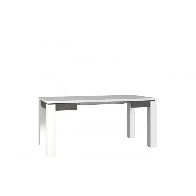Niezwykle funkcjonalny, rozkładany stół idealnie wkomponuje się we wnętrze jadalni urządzonej w nowoczesnym stylu. Zapewni przestrzeń służącą wygodnemu spożywaniu posiłków, a także będzie stanowił wspaniałe centrum spotkań w gronie rodziny i przyjaciół. Eleganckiego charakteru dodaje meblowi subtelny dekor Biały Połysk zestawiony z kontrastującą z nim listwą w dekorze Beton Ciemnoszary.