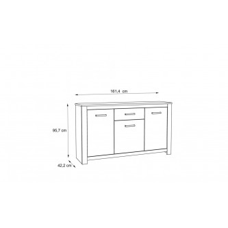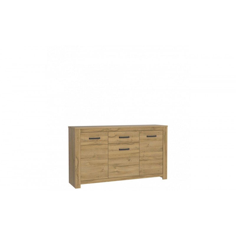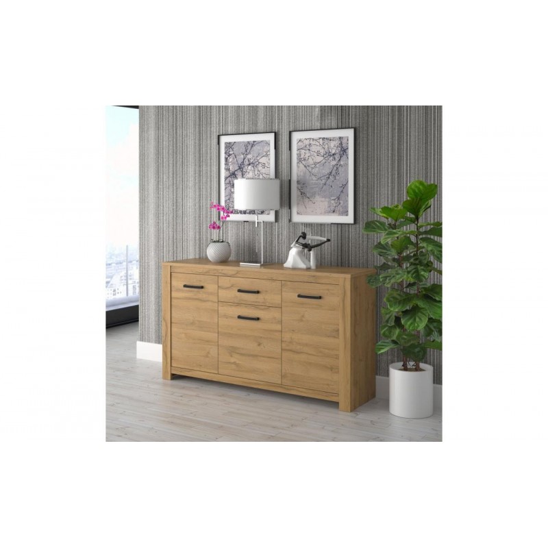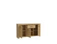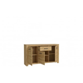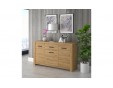 Nowoczesna komoda w szlachetnym dekorze Dębu Postarzanego znajduje zastosowanie zarówno w salonie, jadalni oraz przedpokoju. Jej przepiękny dekor ociepli wnętrze oraz nada mu niezwykle luksusowego i przytulnego charakteru. Wyposażona w trzy zamykane szafki i szufladę gwarantuje odpowiednio dużo miejsca do przechowywania.