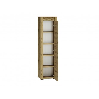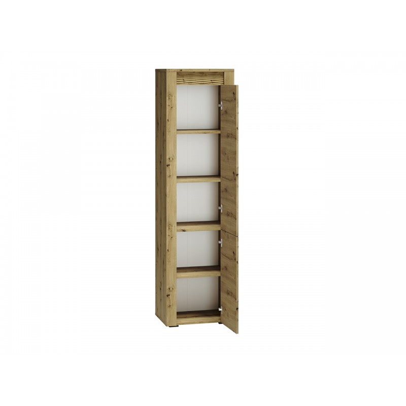 Bieliźniarka Artis 02 dzięki prostej formie sprawdzi się zarówno w sypialni, jak i pokoju dziennym czy jadalni. Jest to jednodrzwiowy mebel z możliwością montażu na lewą lub prawą stronę. Zawiasy z cichym domykiem niemal bezgłośnie dociągają drzwi. Bieliźniarka posiada 4 półki, co sprawia, że jest bardzo pojemna. Naturalny wygląd płyty laminatu w połączeniu z czarnym uchwytem nadają bryle lekko industrialny charakter. Korpus szafy został wykonany z wysokiej jakości płyty meblowej i pokryty laminatem z melaminy, zaś front został zabezpieczony estetycznym obrzeżem ABS, by wzmocnić trwałość i odporność płyty na wilgoć i odkształcenia.