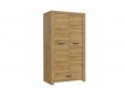 Dwudrzwiowa szafa w szlachetnym dekorze Dąb Postarzany dzięki swej prostej formie i eleganckim dekorze z łatwością dopasuje się do większości pomieszczeń oraz aranżacji. W środku szafy znajdują się praktyczne półki na złożone rzeczy oraz drążek na wiszącej ubrania. W dolnej części mebla została zamontowana pojemna szuflada, w której można przechowywać mniejsze elementy garderoby.