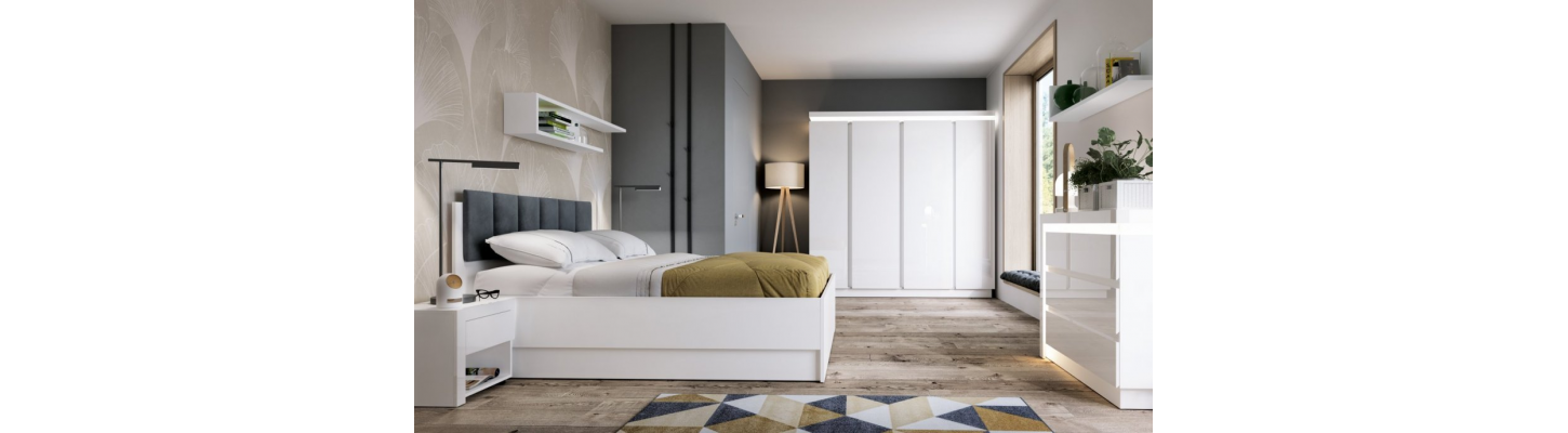 Szer. 145,6cm Wys. 105,8cm Głęb. 205,4cm Łóżko 140 z podnoszonym stelażem Lyon Biały TYP LYOZ02 3 339 zł